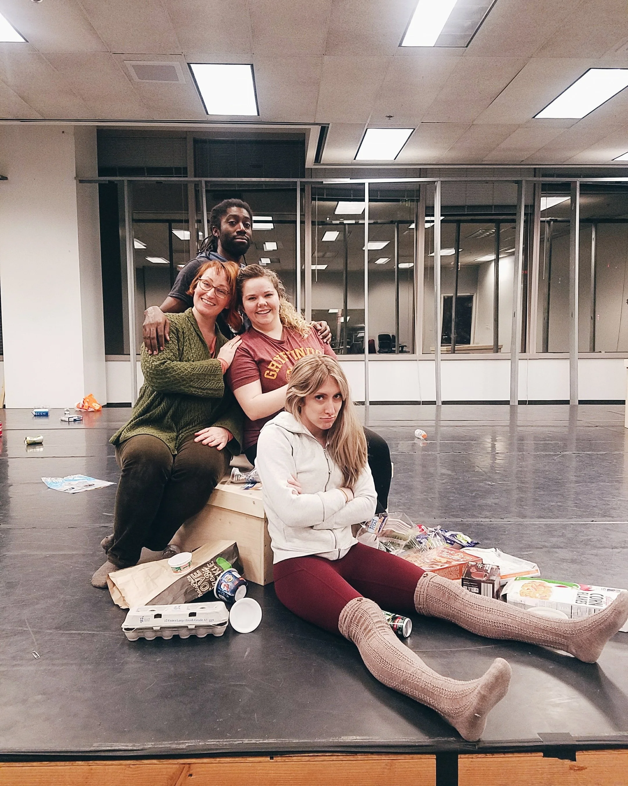 Throughout the production process, I offered support in devised movement assistant directing, ensured union standards were upheld, managed the calendar, kept rehearsal reports, called the show, and ran the sound board, among other needed jobs as they came up.